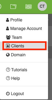 - In your dashboard, click on the profile icon, and select Clients.