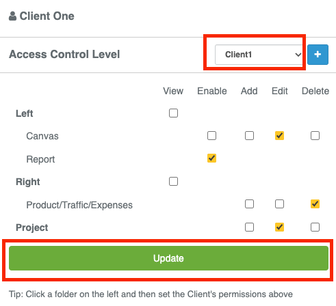 Set A Client's Permissions